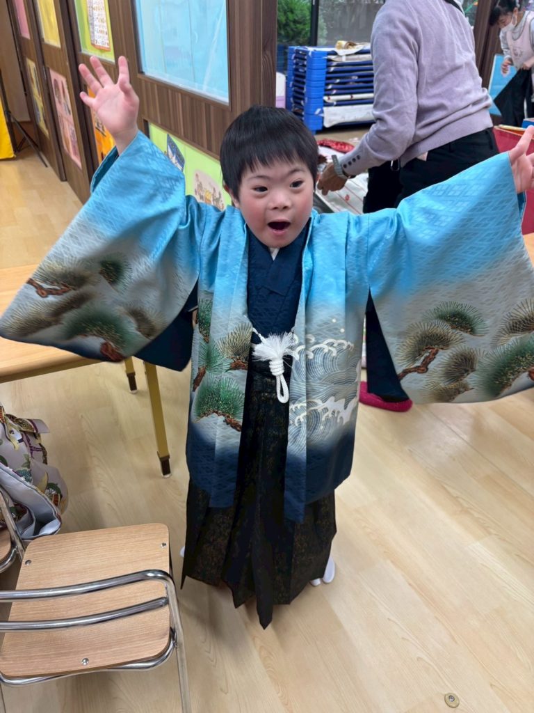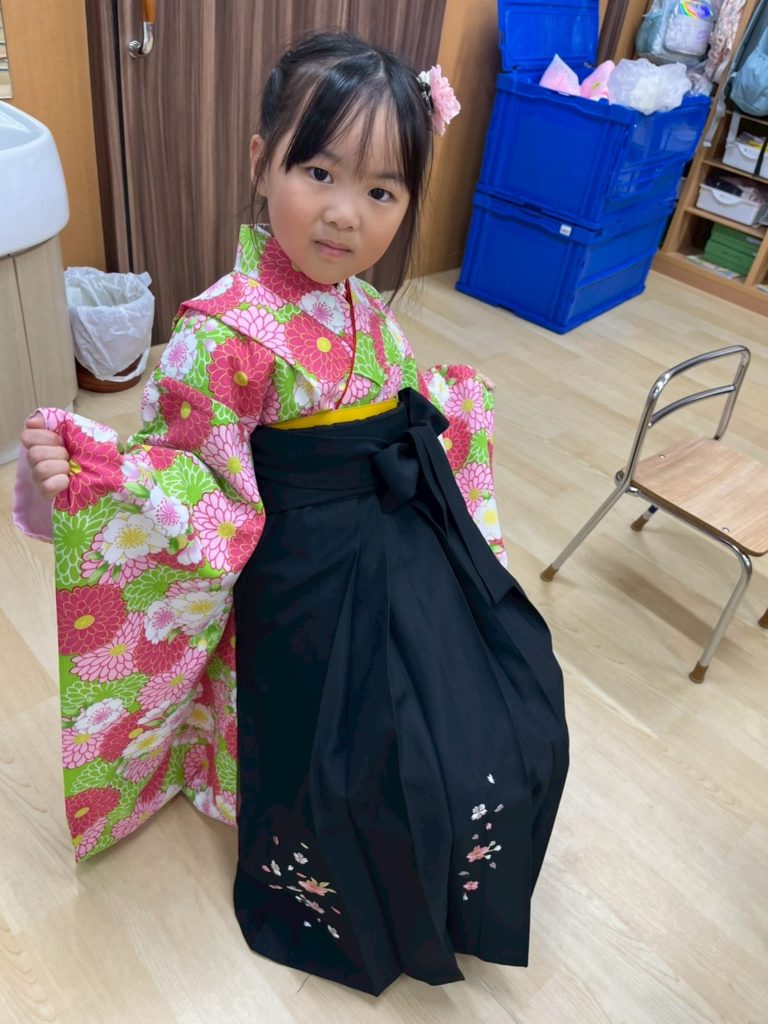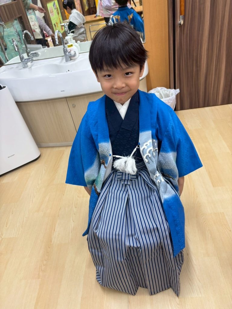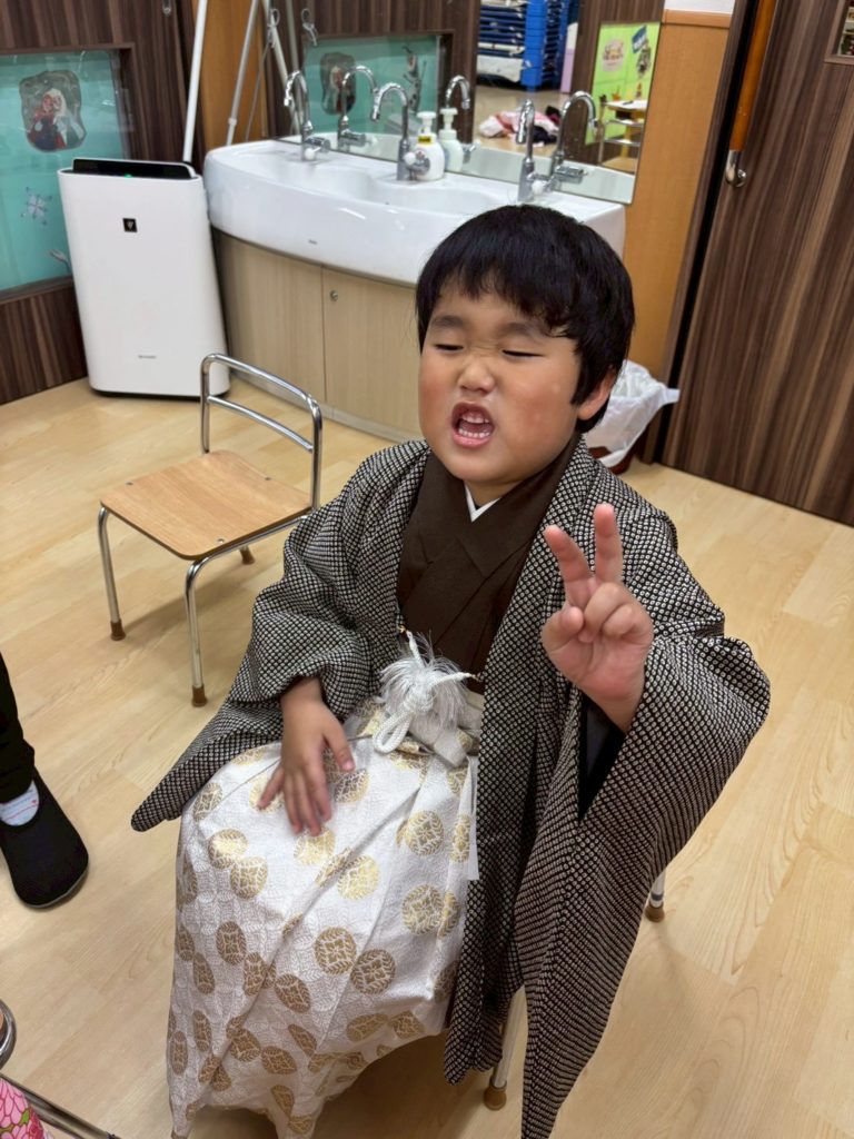 保育園で着物を着るのは初めてだから、なんだかドキドキするね。