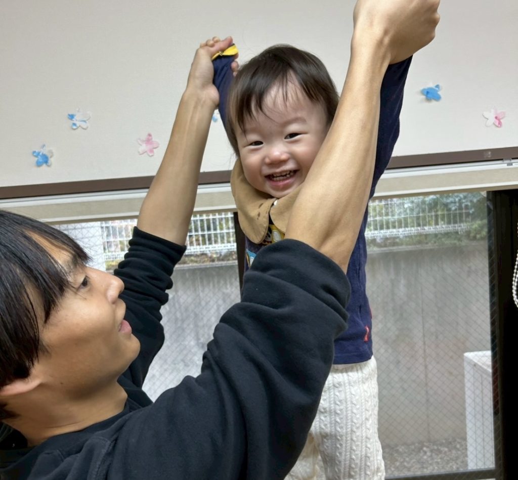 落ちないように、手はグー。