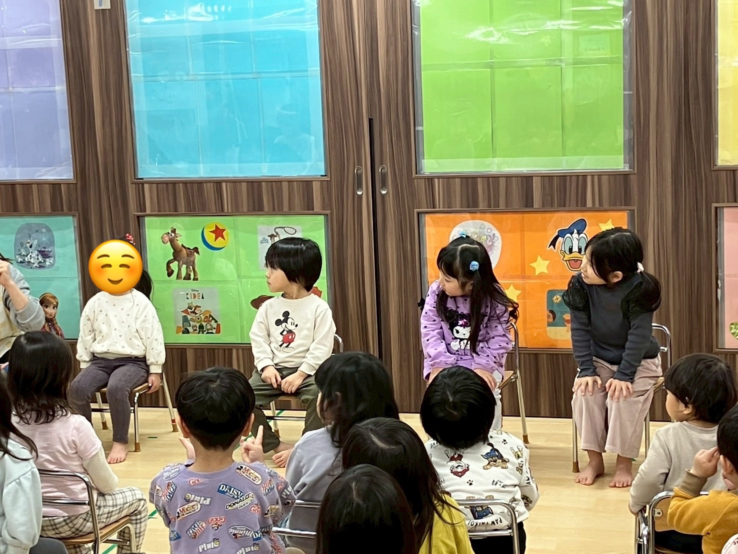 かもめ組のお友だちは、カラフルな絵の具を持ってかもめ組の部屋へ。