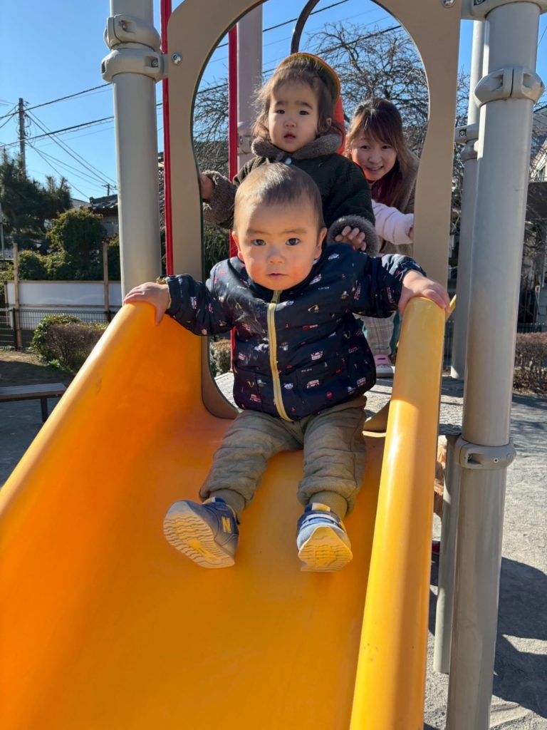 滑り台だ!シューっ