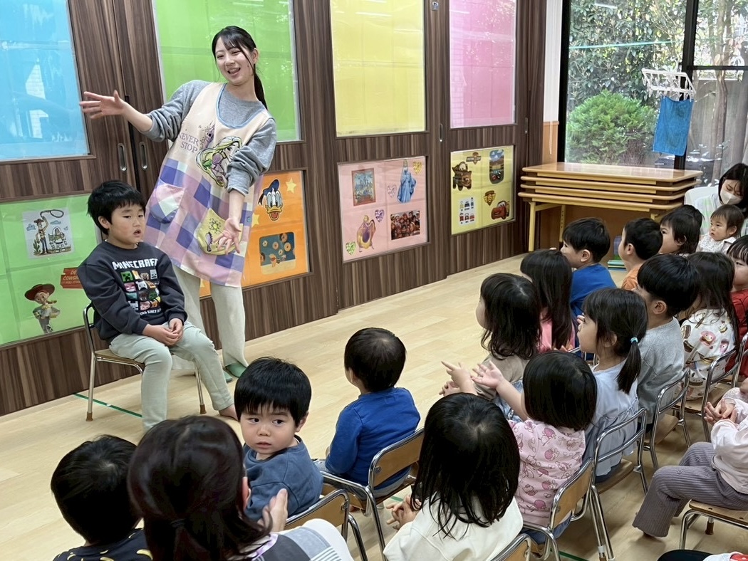 今日は3月の誕生日会の日。 3月は誰がお誕生日なのかな? 3月生まれは、くじら組のお兄さん! 好きな色に好きなキャラクター、くじら組で一番楽しかったこと
