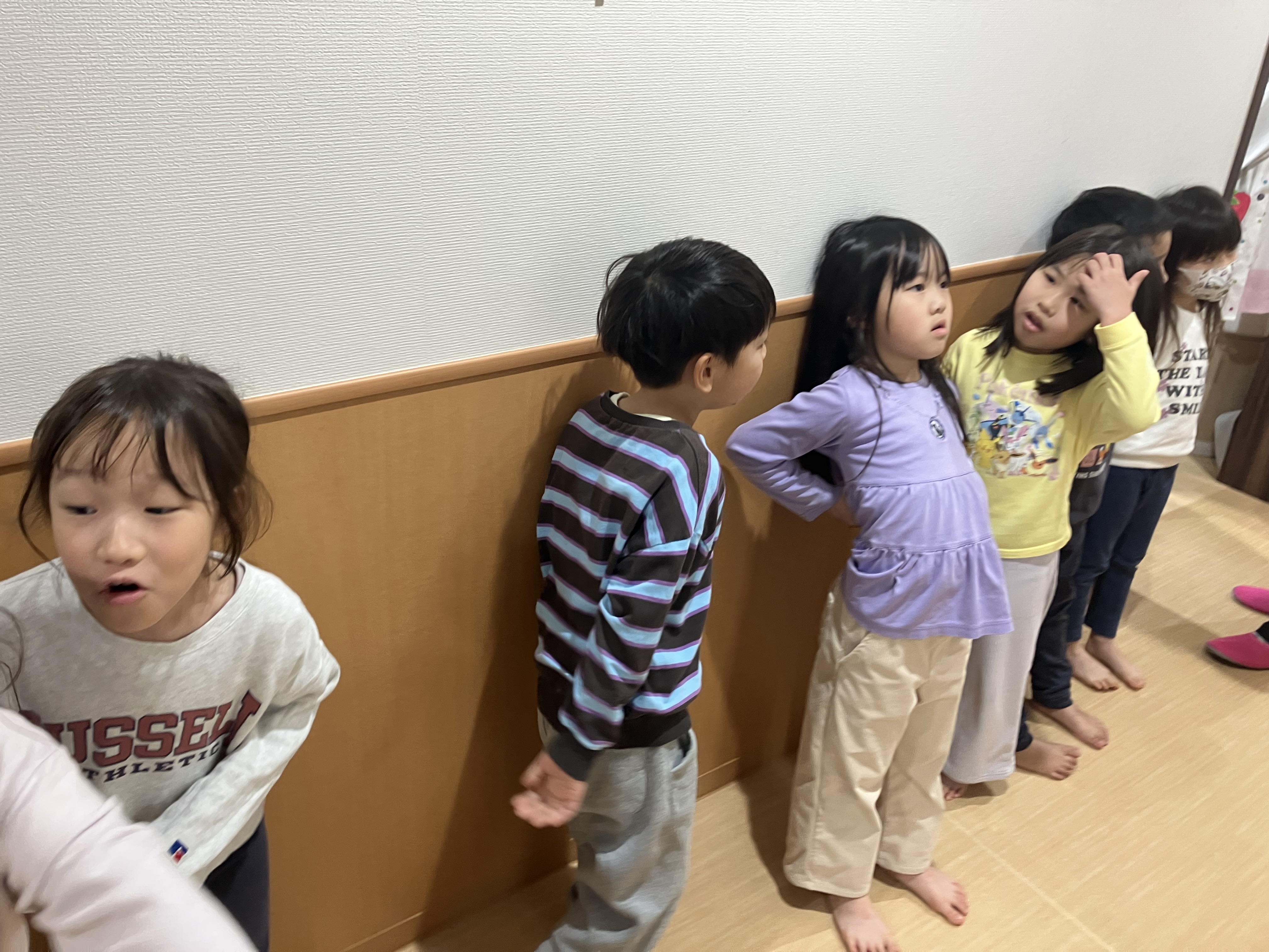 今日は、特別な日。 くじら組のお友だちへ、たくさんの感謝を伝えるための「くじら組を送る会」をするんだ。 くじら組のお友だちは、廊下でソワソワ… 「何が始まるんだろうね!」