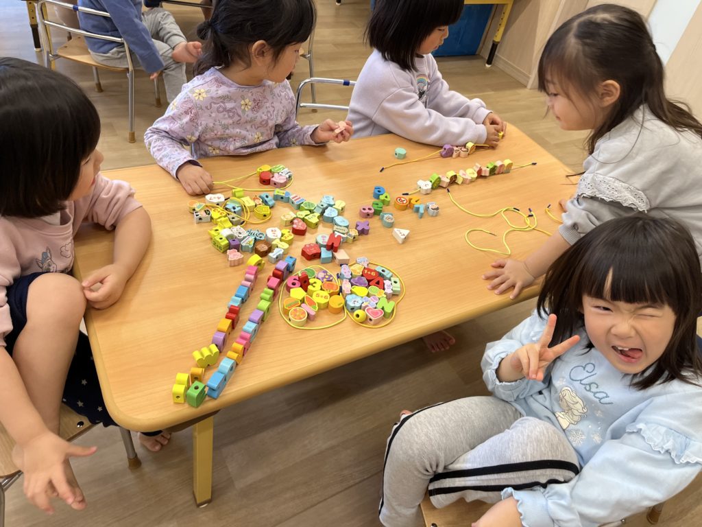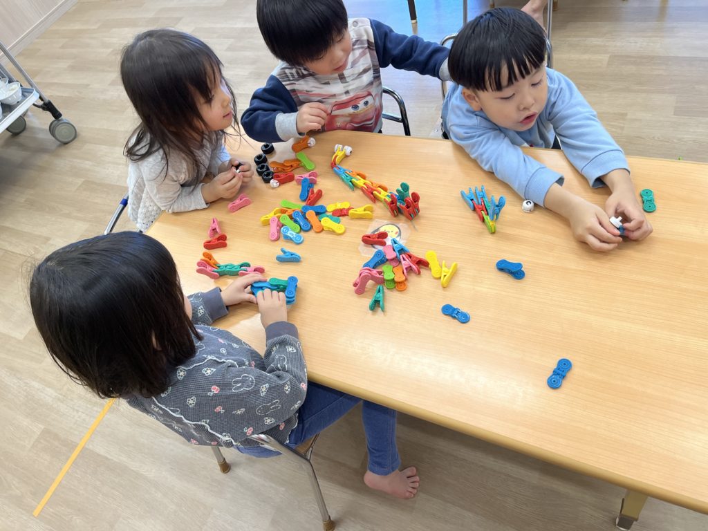 その後園庭で少し走りお部屋で玩具で遊びました。