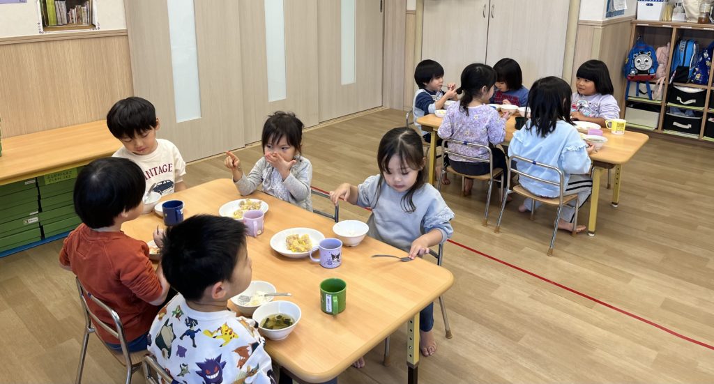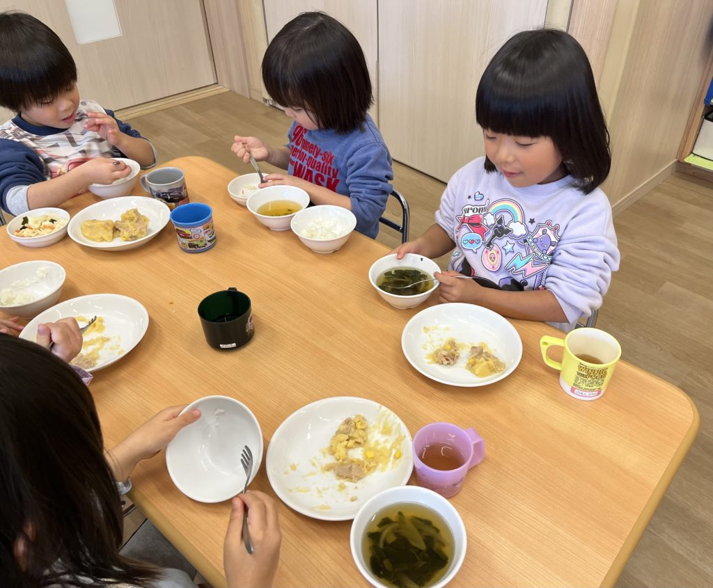 沢山遊んでお腹が空いていたのか、給食を食べるのがとても早く終わりました♪♪可愛いかもめさんです!