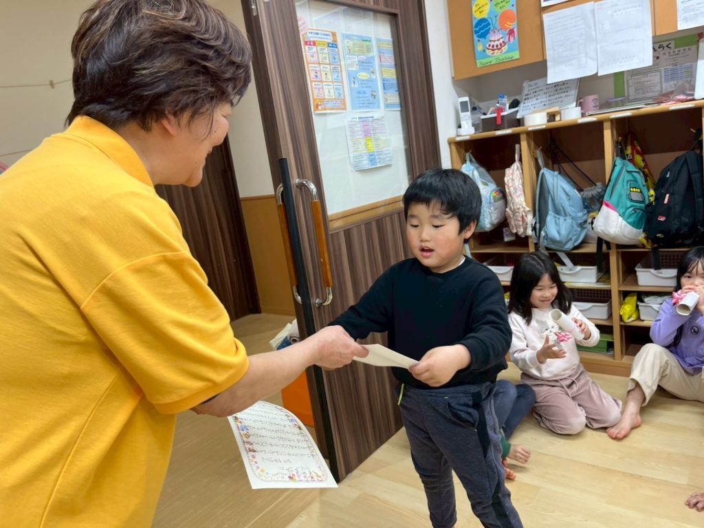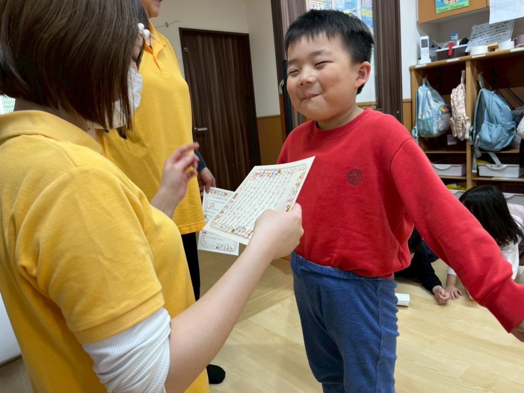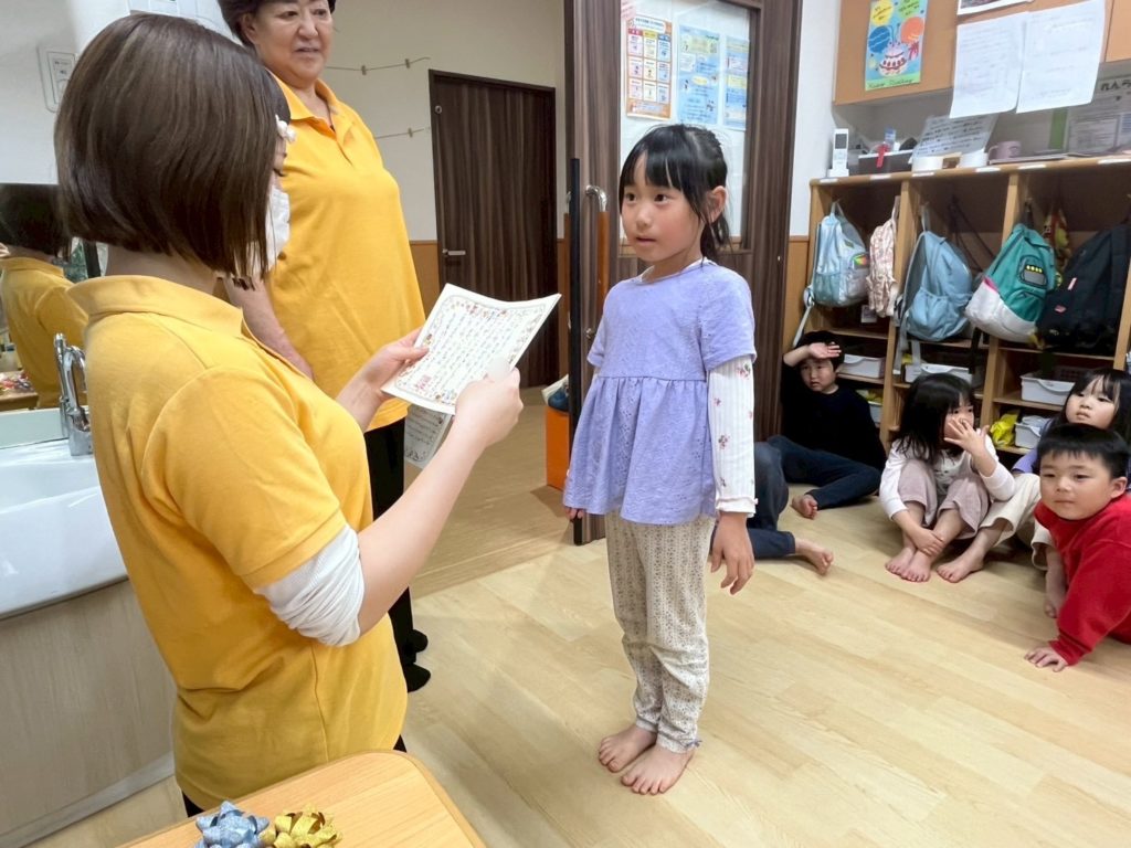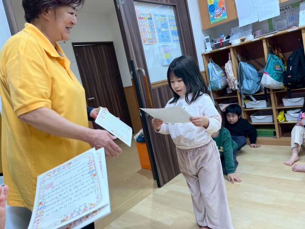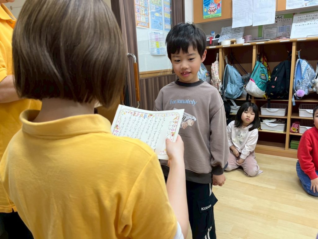 なんだか卒園式みたいで、少し緊張しちゃうな。