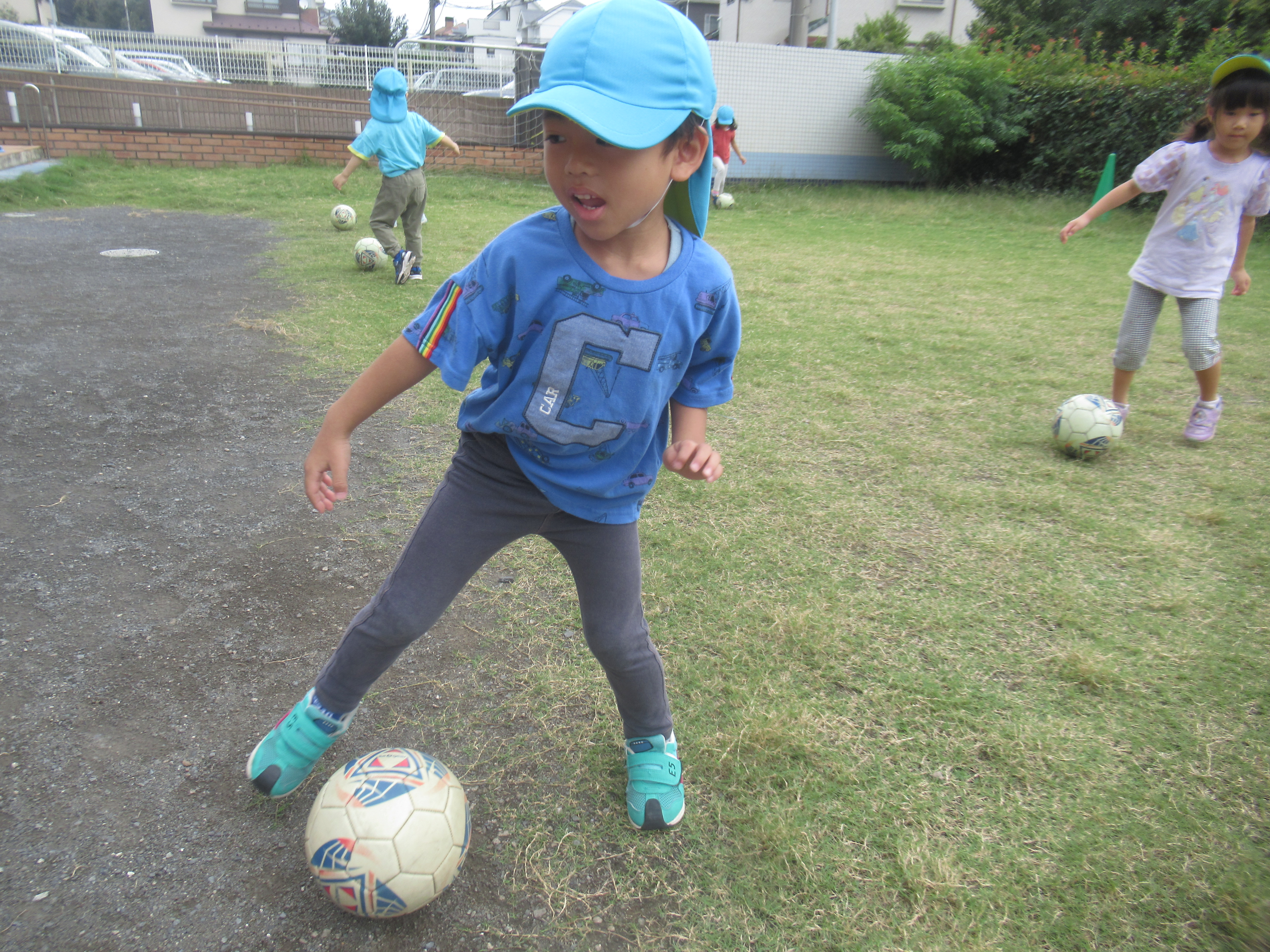 今日は正課体育でサッカーをしました☺まずはボールとお友だちになるところから上手にシュートを決めていました♪