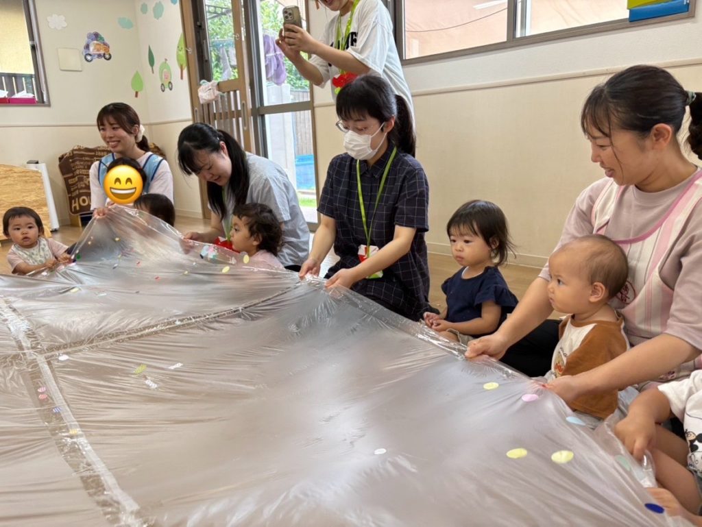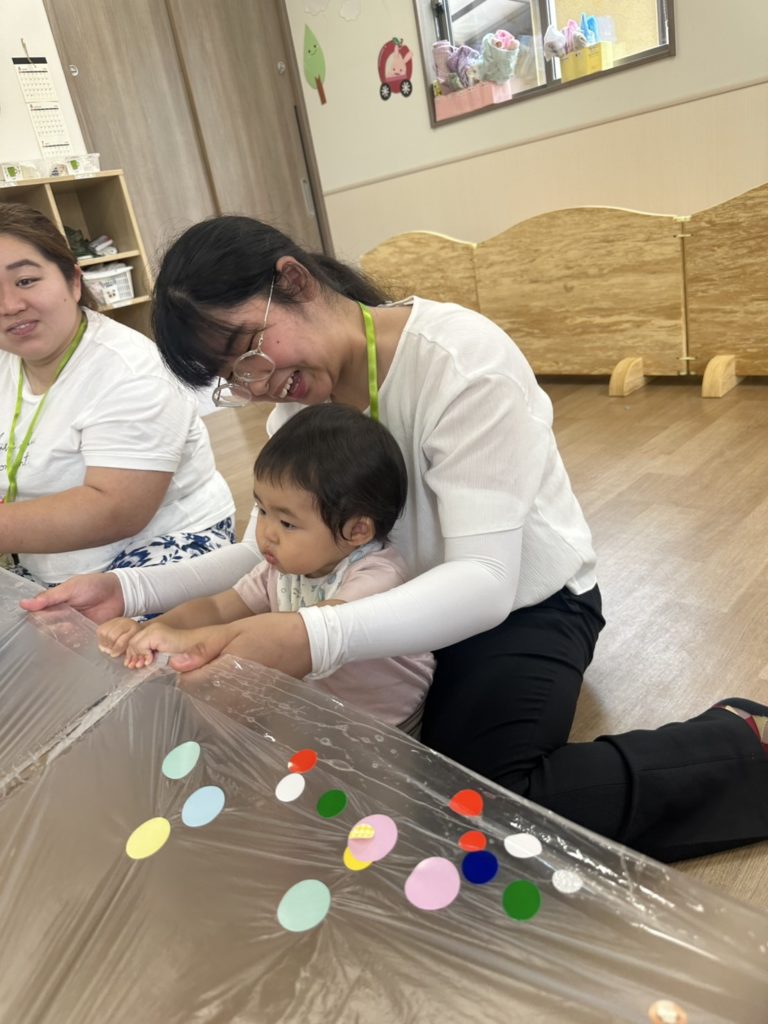その後2園目のうぐす保育園上尾原市に移動し、小規模保育園の温かい雰囲気の中で、子ども達と一緒にポリバルーンを楽しんでいただきました。
